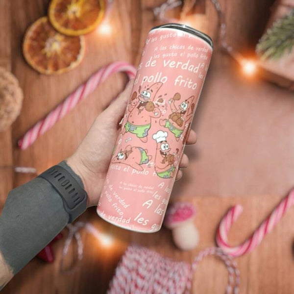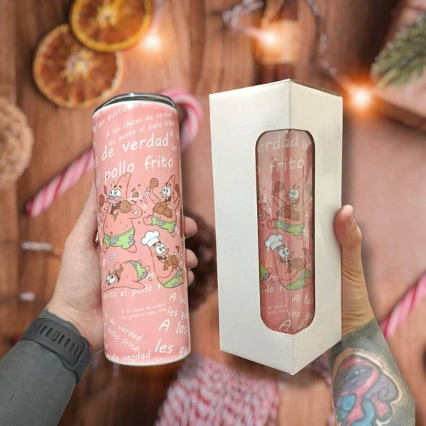 Diseño estetico largo con popote de acero inoxidable y una goma adhesiva para cololcar de porta vaso en tu escritorio o zona donde más utilices tu nuevo termo.